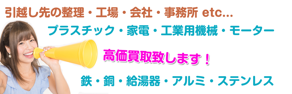 泰興金属株式会社のホームページにご訪問いただき、誠にありがとうございます。私たちは神戸市を拠点に、鉄、銅、真鍮、給湯器、アルミ、ステンレス、工業用機械、洗濯機、家電など、幅広い品目の買取を行っている会社です。個人の皆さまから法人のお客様まで、様々なニーズにお応えするため、幅広い品目を扱っております。